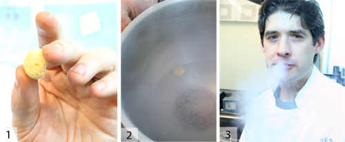 不可凍結的對象和凍結的酷對象:盡管本文不是關于歷史和信貸的問題,但我必須在這里做個例外,因為西班牙El Restaurante Calima的Dani Garcia實際擁有我的橄欖油流程米即將解釋。他使用液氮將橄欖油和橄欖油乳液冷凍成超出您想象的形狀和質地。液氮冷凍油不會傷害您的舌頭,因為該油不會像水那樣包裹熱量。